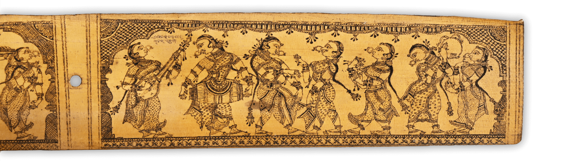 Image : Chitra-pothi of Upendra Bhañja’s Lābaṇyabatī depicting musicians, illustrated by the 19th-century master Raghunātha Pruṣṭi of Dharākoṭa, Gañjām. Subuddhi collection, photograph by Prateek Pattanaik, 2024.